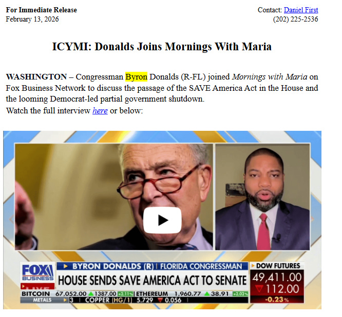 If youโd like to receive excerpts from Congressman Byron Donalds, Click Here.